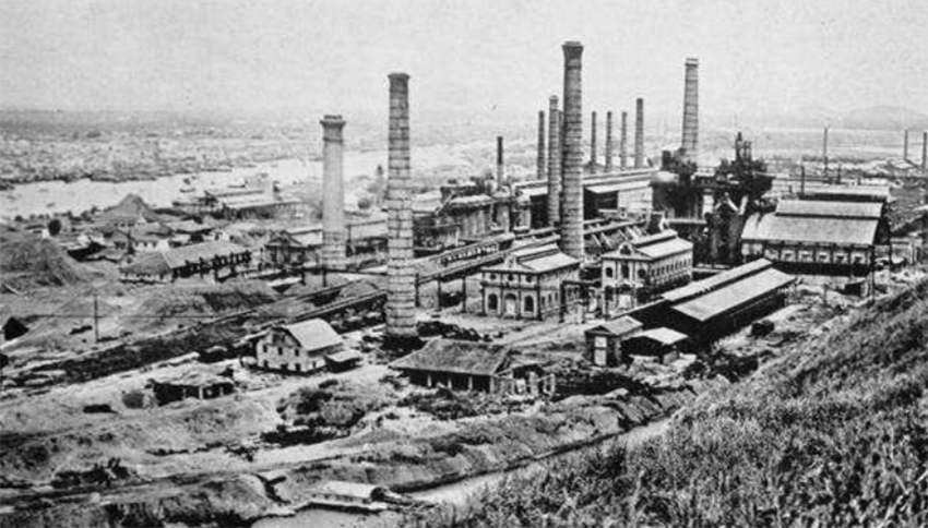 1898年,盛宣懷接辦虧損嚴重的漢陽鐵廠,他招募商股,派委員帶同外國礦師沿長江上下暨江、皖、楚西各境搜求鉆試尋煤,開辦萍鄉煤礦,解決燃料問題。之后又奏派人員出國考察求取煉鋼新法,提高產品質量,并從國外購置新機爐,全面改造鐵廠,使漢陽鐵廠成為當時東亞“第一雄廠”。但在改造擴充時,盛宣懷為籌集資金,以大冶鐵礦得道灣礦山及礦局的全部財產作抵押,向日本銀行借款,使大冶鐵礦主權喪失。